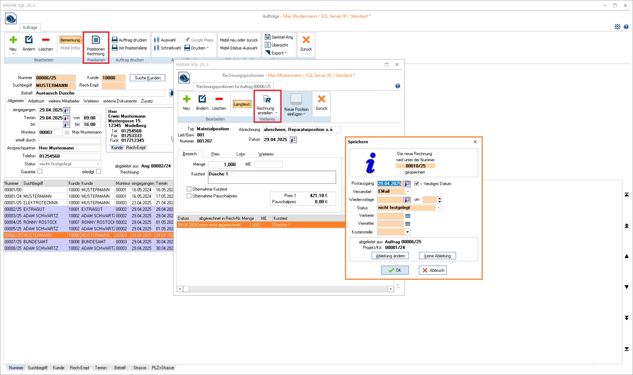 Erstellen von Sammelrechnungen über mehrere Aufträge möglich