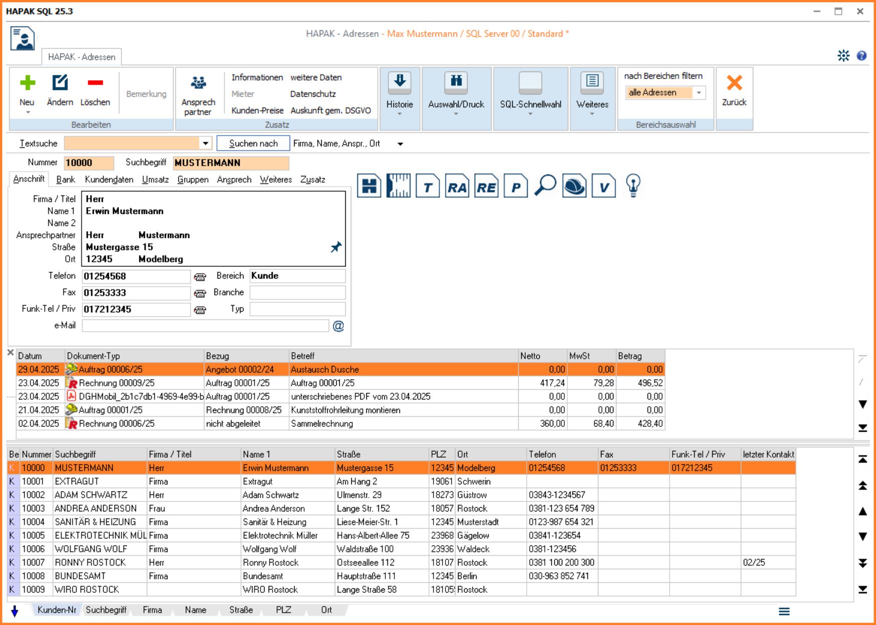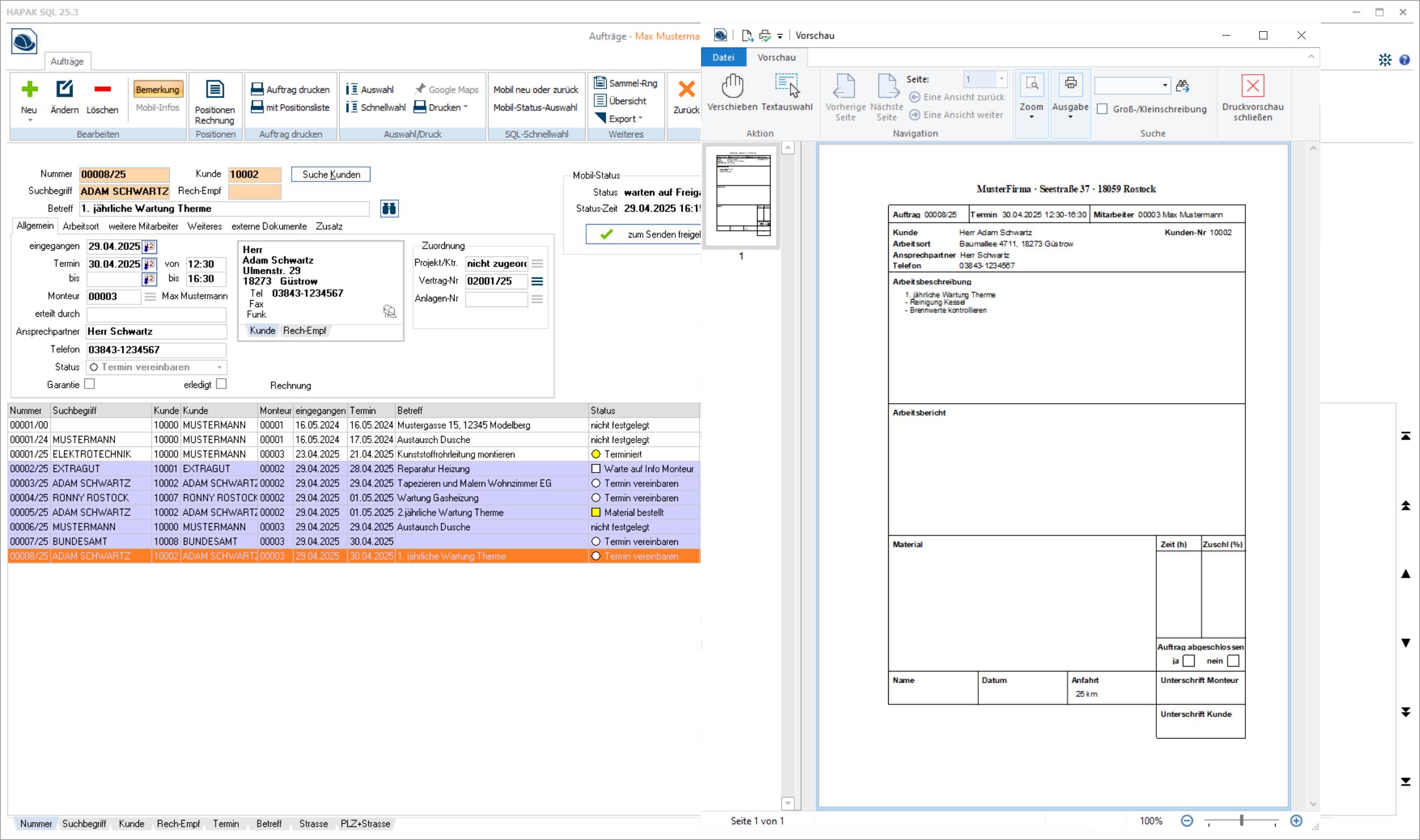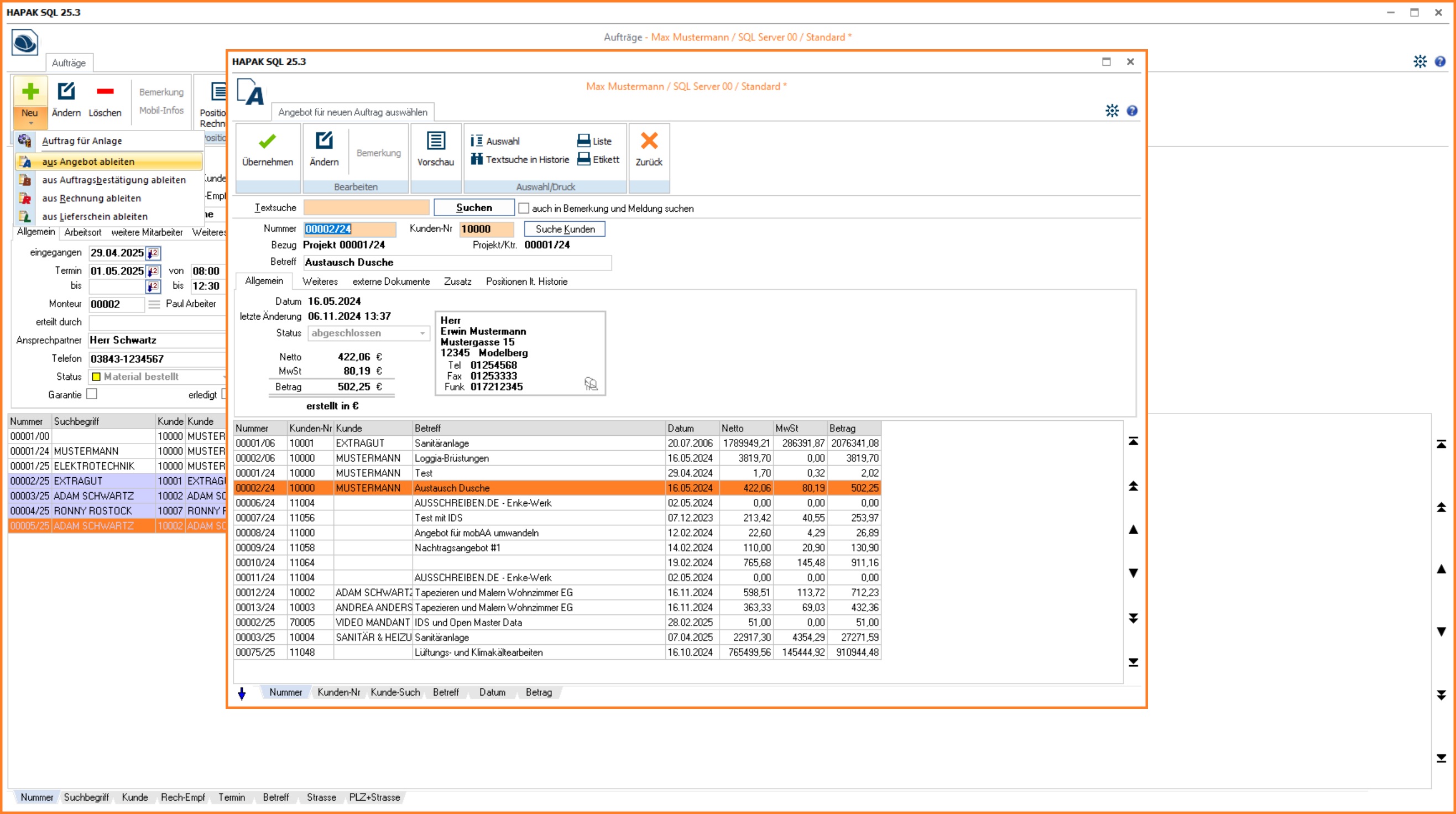 Erstellung von Aufträgen frei oder aus vorhandenen Angeboten, Auftragsbestätigungen, Wartungsverträgen usw. (AA-01, AA-04)
