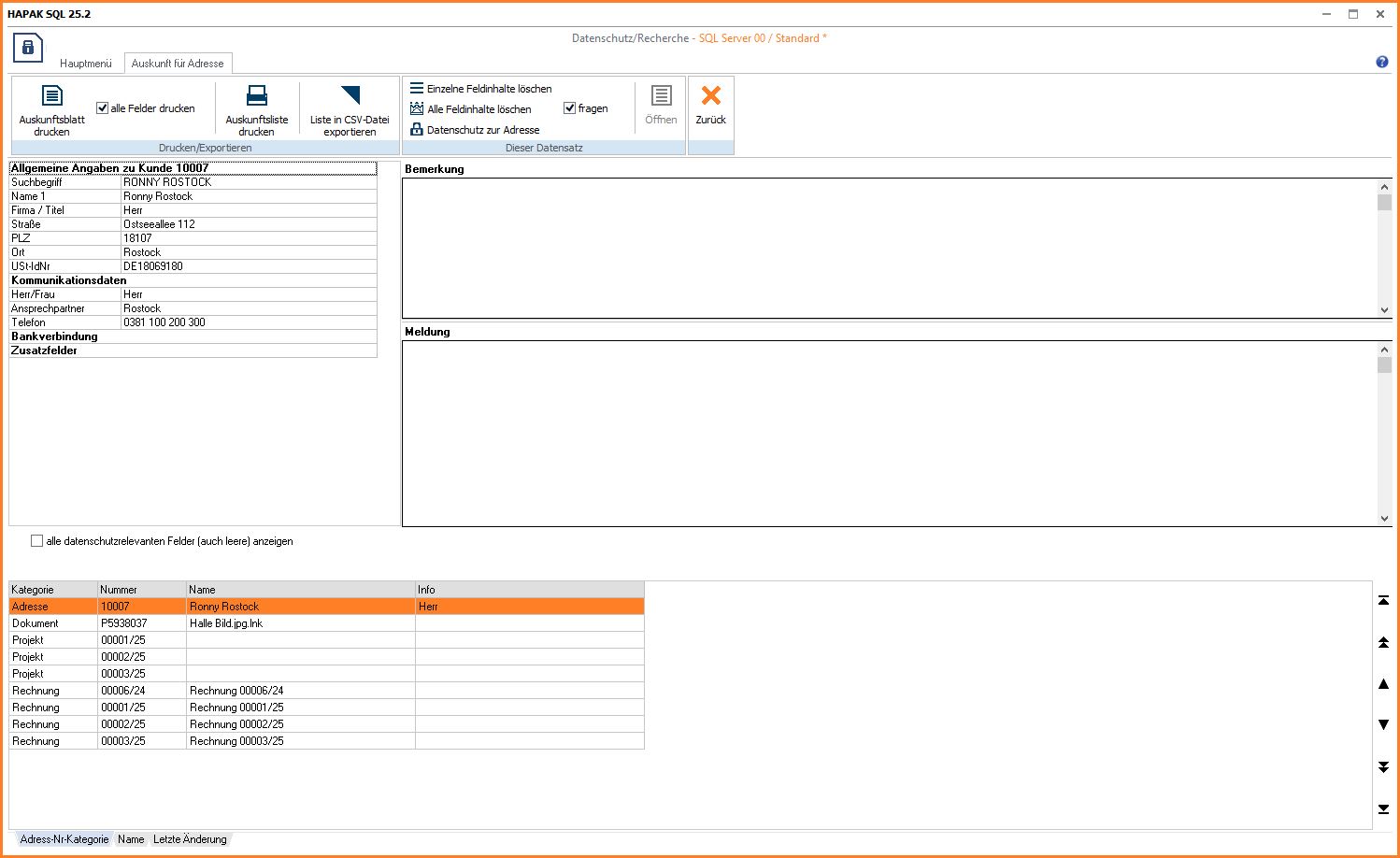 diesbzgl. Auskünfte gegenüber Kunden und Mitarbeitern können damit in gedruckter Form oder als CSV-Datei ausgegeben werden (DS02, DS03)