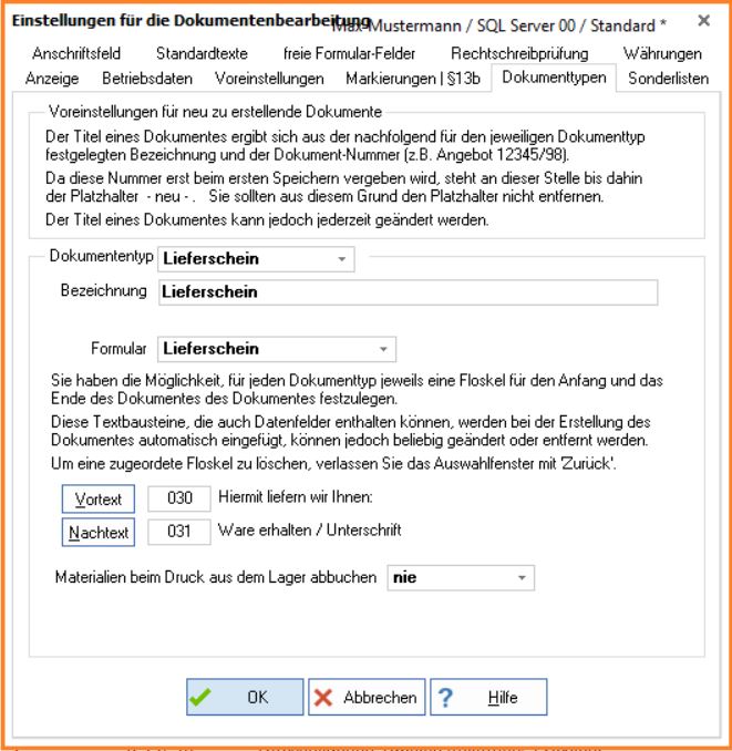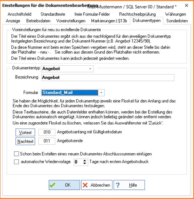 Verwendung unterschiedlicher Vor- und Nachtexte je Dokumententyp mit automatischem Austausch bei Dokumententypwechsel (03)
