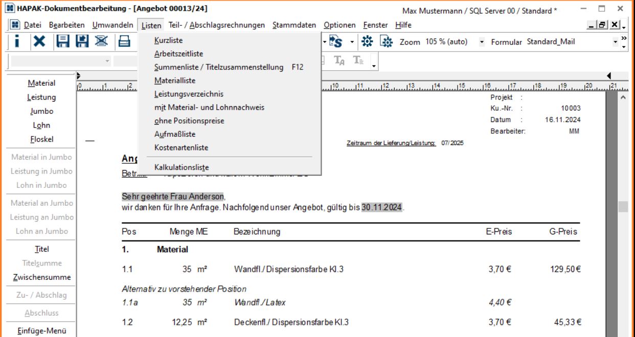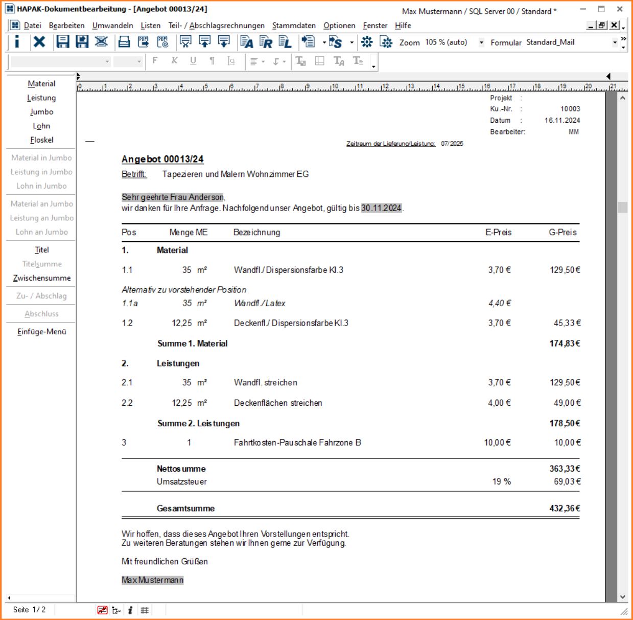 Erstellen von Angeboten / Auftragsbestätigungen / Lieferscheinen / Rechnungen (02)