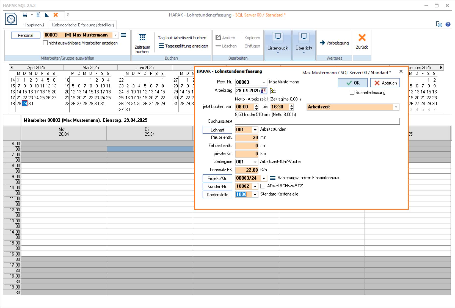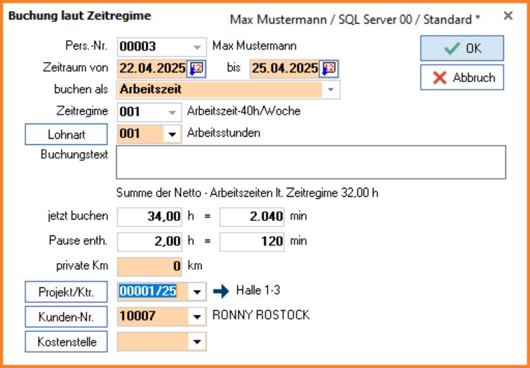 Zuordnung der Zeitbuchungen zu Baustellen/Projekten oder Kostenstellen (LohnSt-05)
