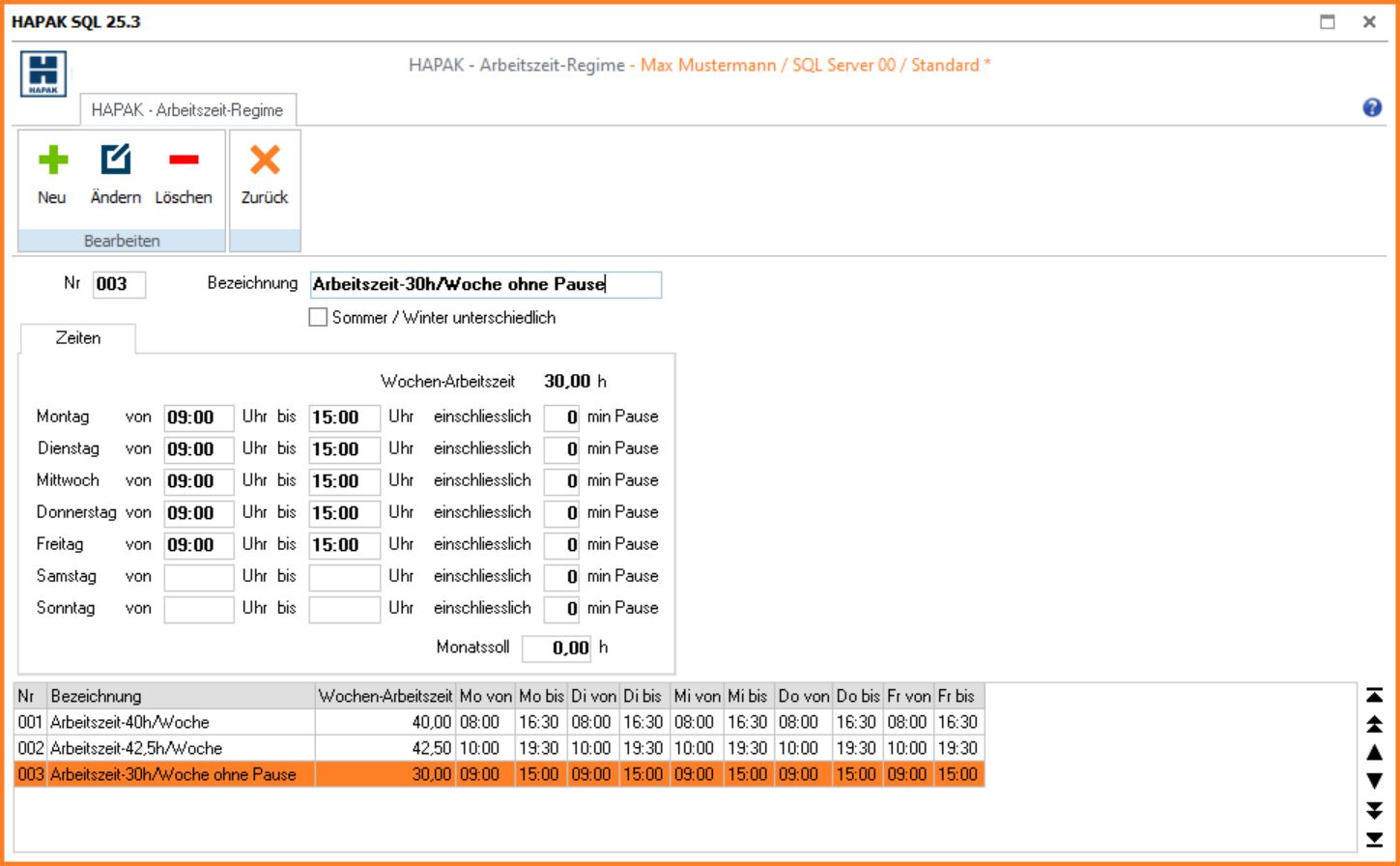 Anlegen von beliebigen Zeitregimes (z.B. Vollzeit, Teilzeit, Schichtarbeit oder Sommer-/Winterarbeit) (LohnSt-01)