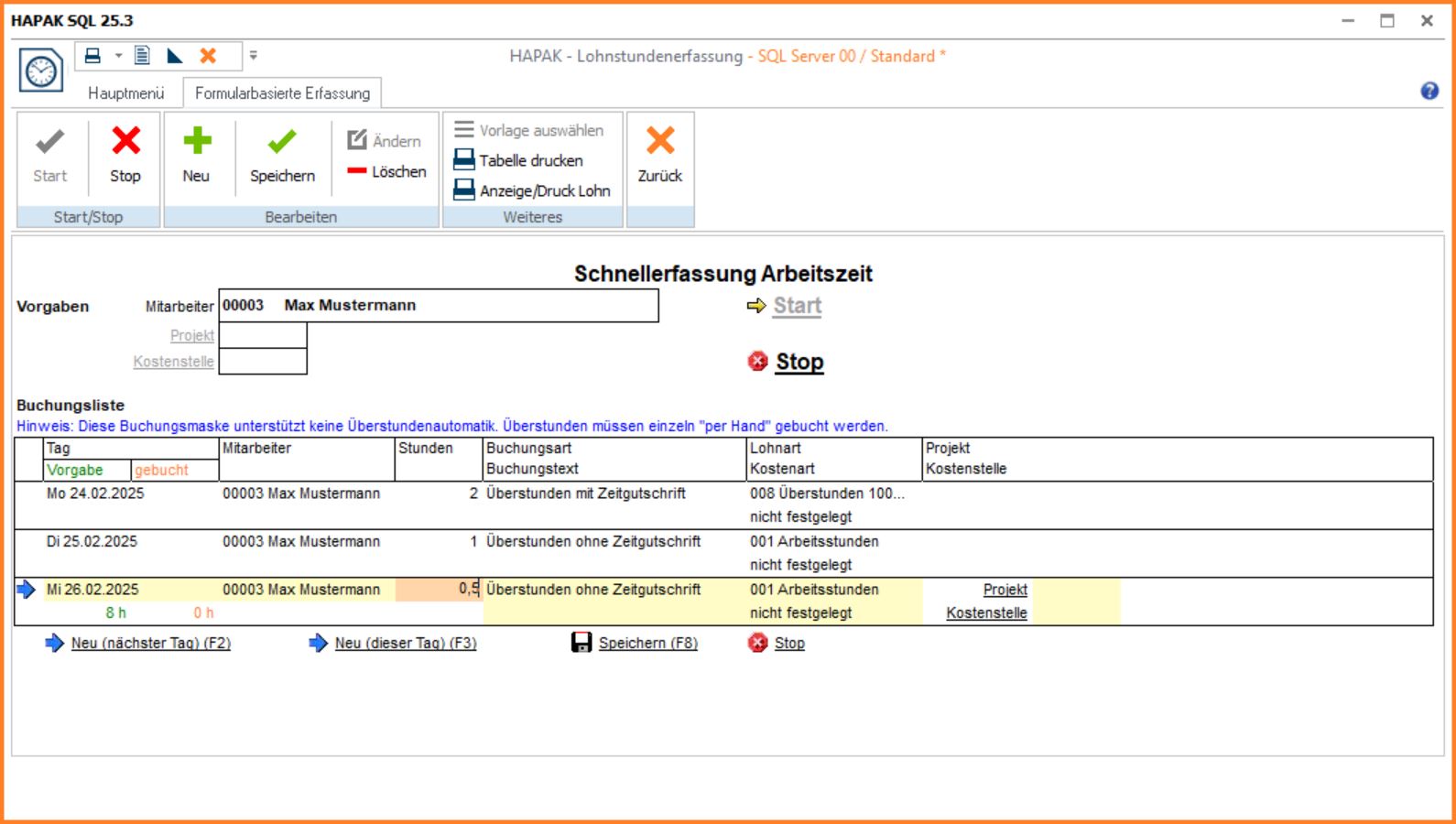 Schnellerfassung gemäß Zeitregime oder detaillierte Erfassung (Uhrzeit von/bis) (LohnSt-04)