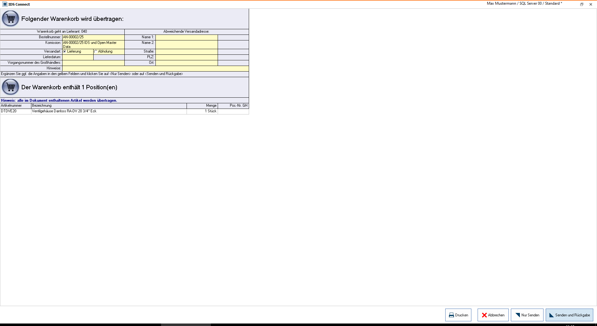 bearbeitetes Angebot zurück an den Onlineshop schicken, um Bestellung auszulösen