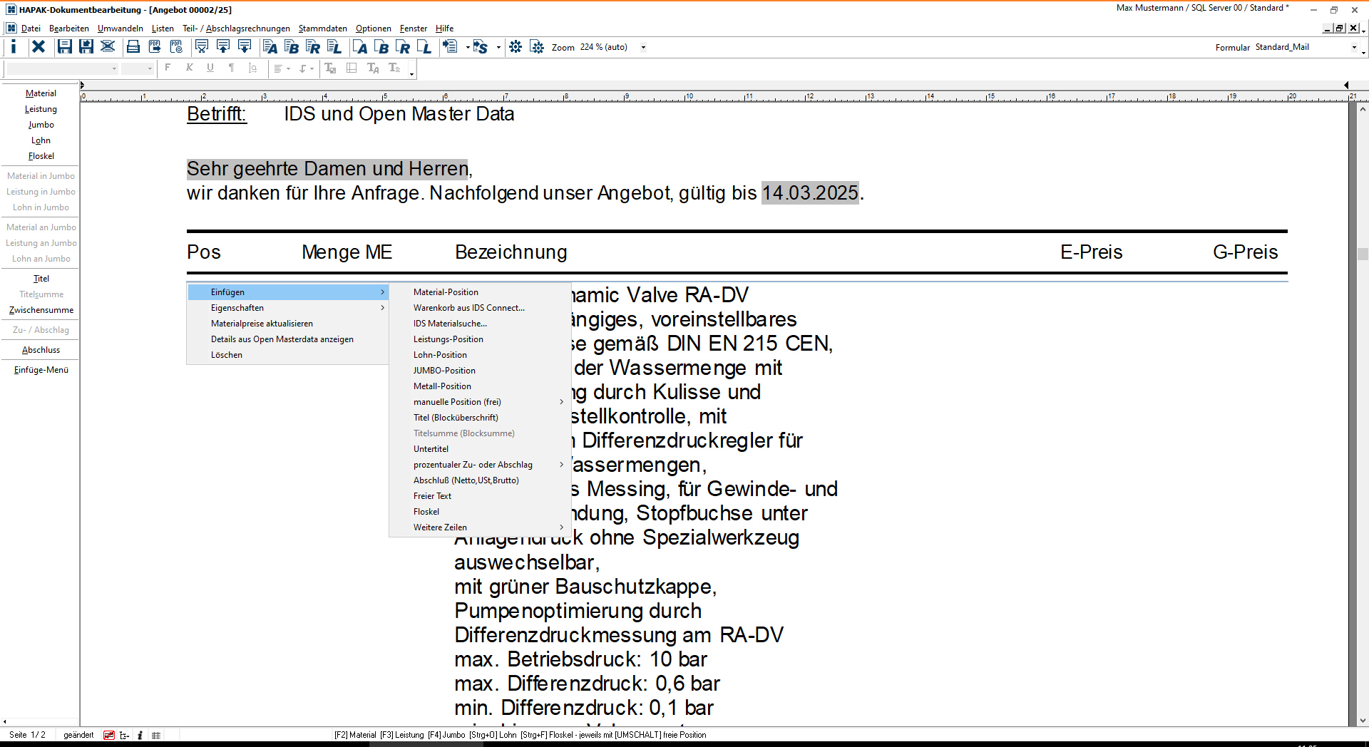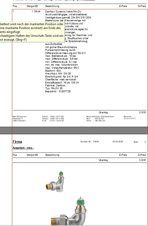 Übernahme von Lieferantenangeboten direkt ins Dokument