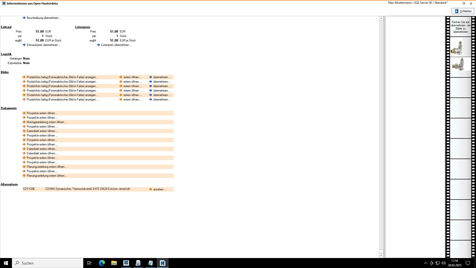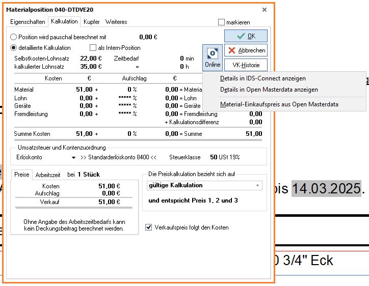 Übernahme von Artikelbeschreibungen und Bildern in die Materialposition