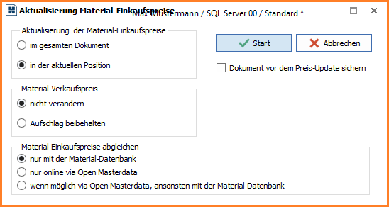 Preise aktualisieren für einzelne Positionen oder das gesamte Dokument