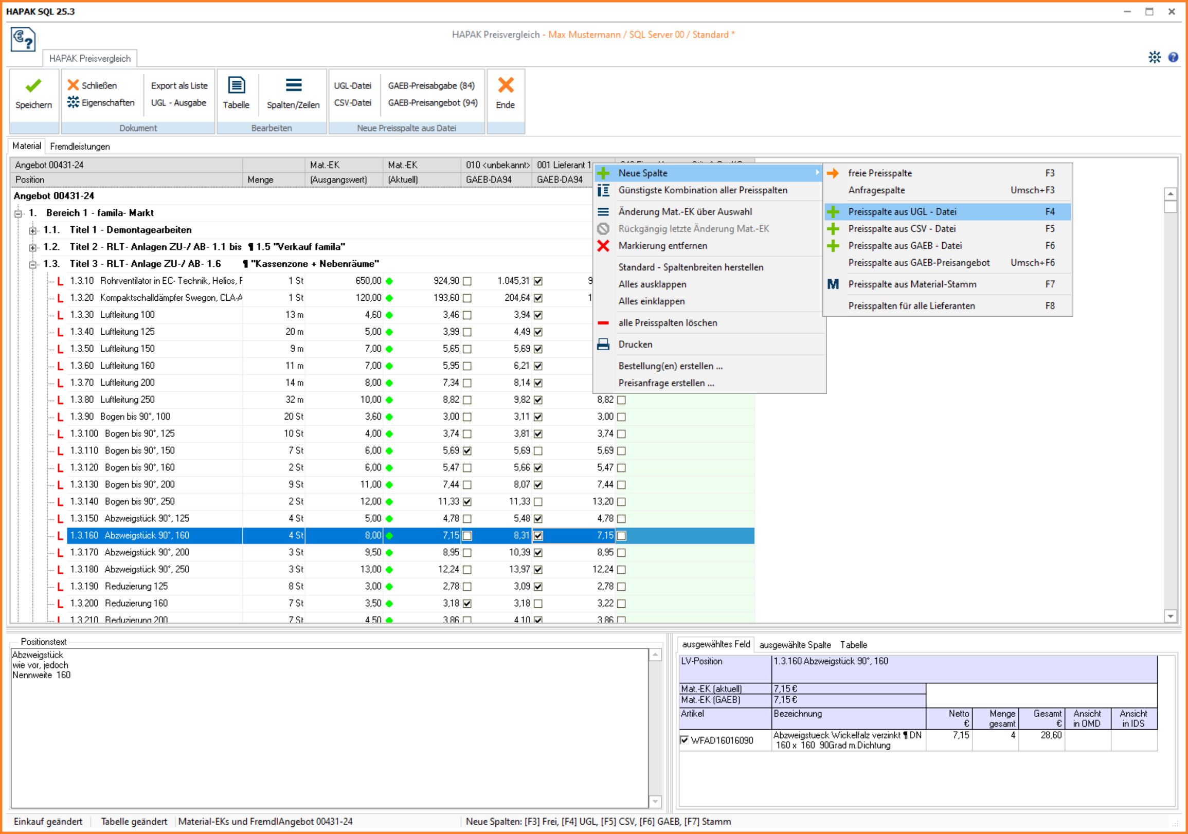 unterstützte Datenquellen: Materialstamm, GAEB-, UGL- und CSV-Format (PrVg-02)