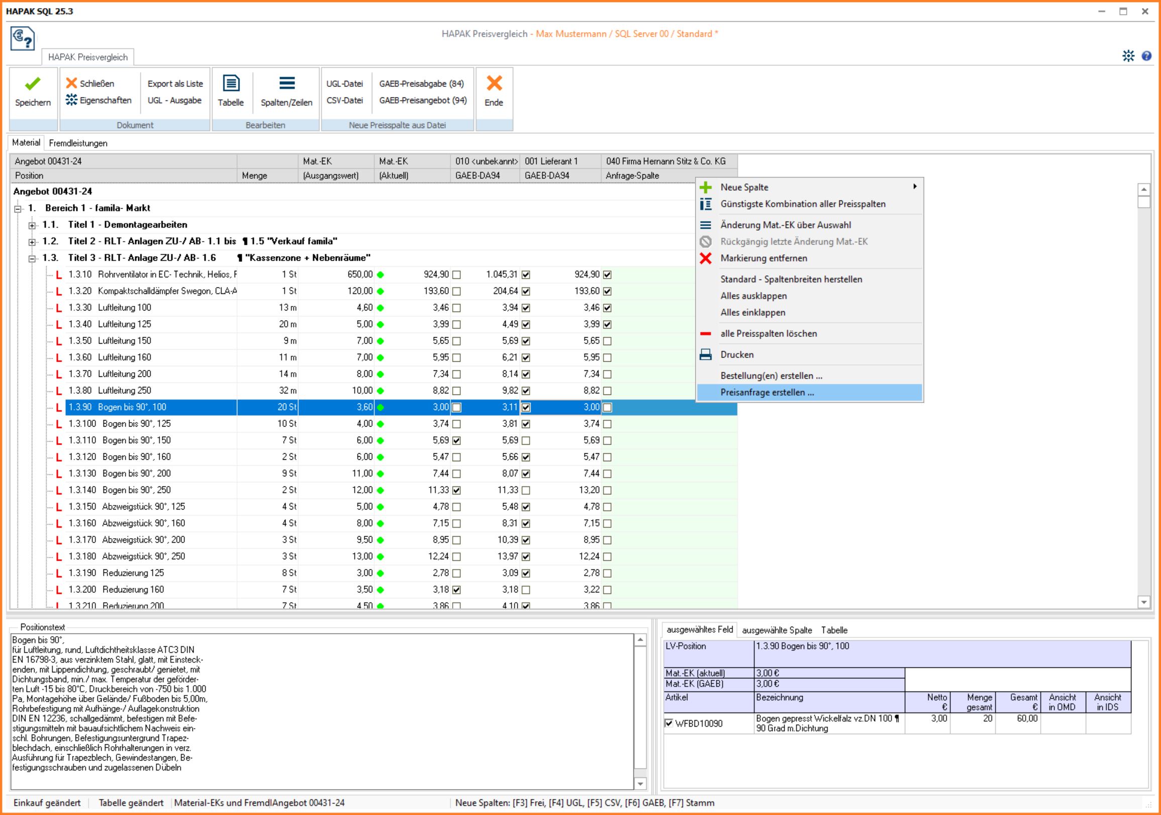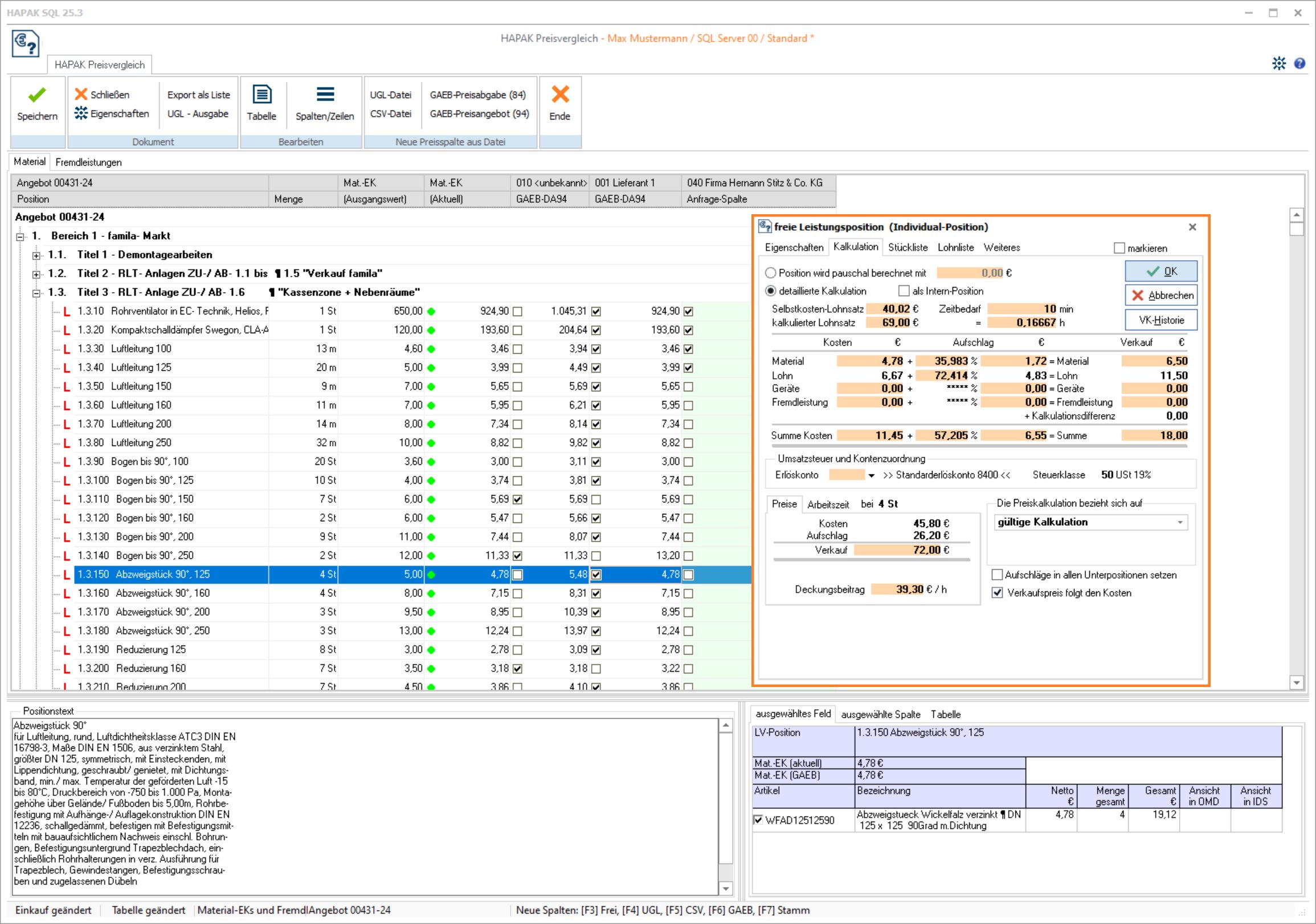 eigene Kalkulation mit den Preisen von unterschiedlichen Lieferanten in direkte Beziehung setzen und ggf. zu ändern oder in einem neuen Angebot abspeichern (PrVg-03)