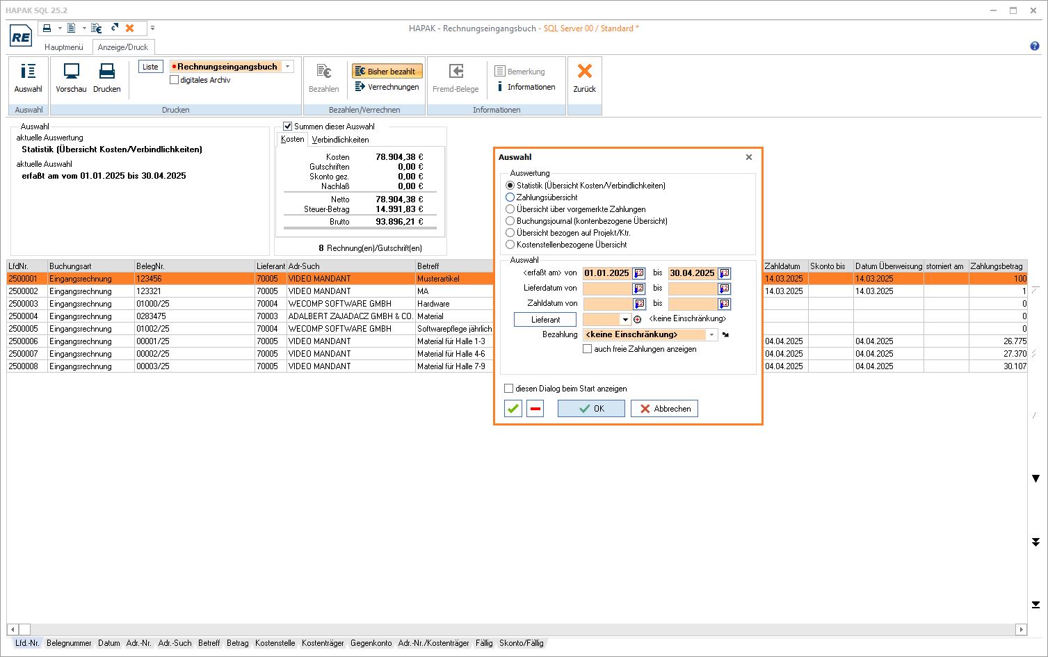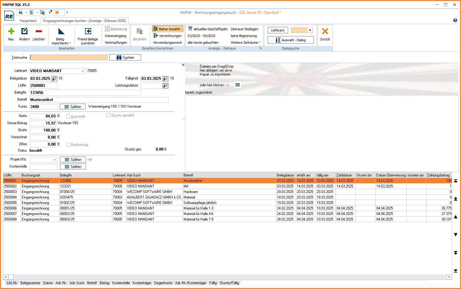 Erfassen und Verwalten aller in HAPAK gebuchten Eingangsrechnungen und -gutschriften