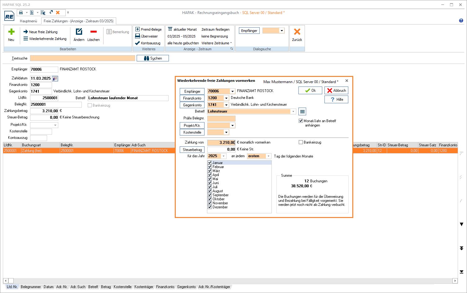 Buchung von freien Zahlungen für Buchungen ohne Beleg (z.B. Miete, Leasing..) (RE03)