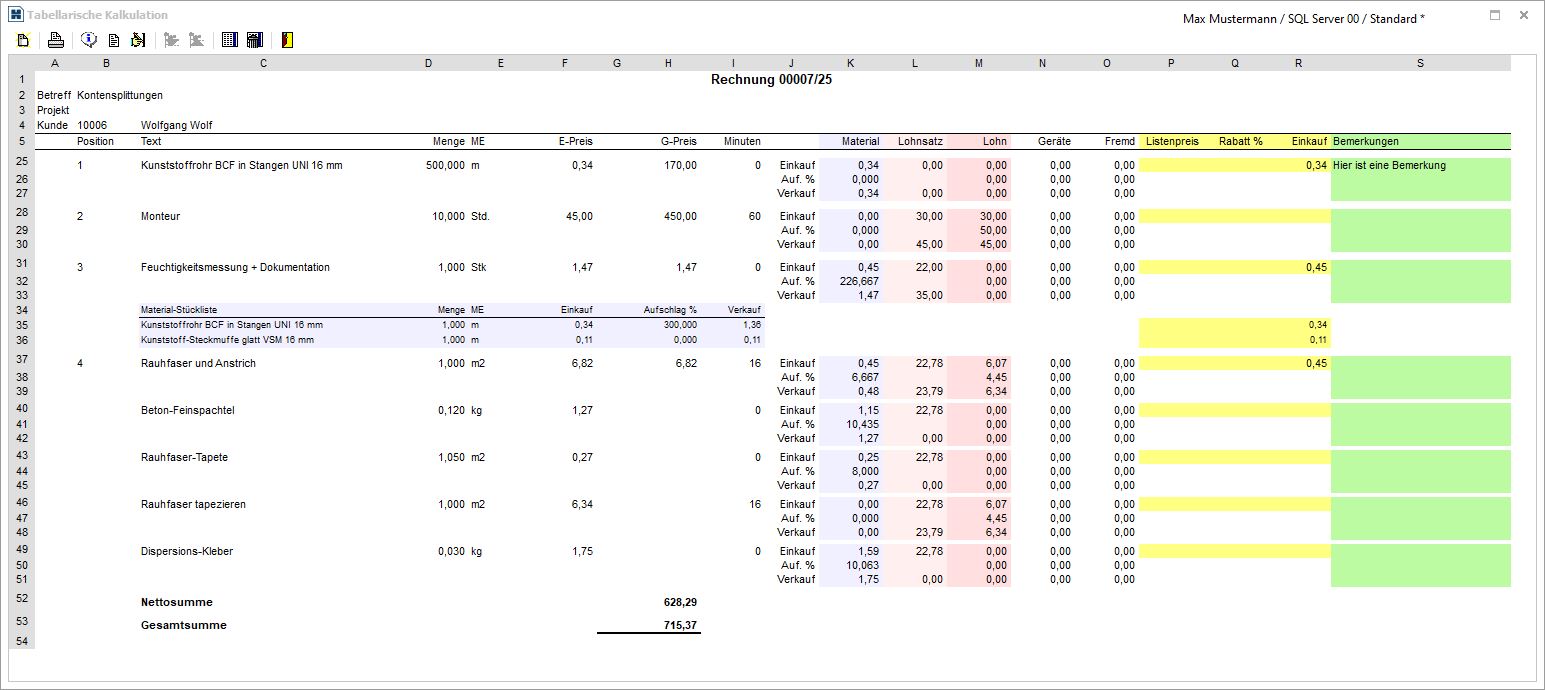 Die Kalkulation in einer übersichtlichen Tabelle auf Haxxel-Basis erledigen und anschließend ins Dokument zurückschreiben. Besonders empfohlen bei umfangreichen Dokumenten.