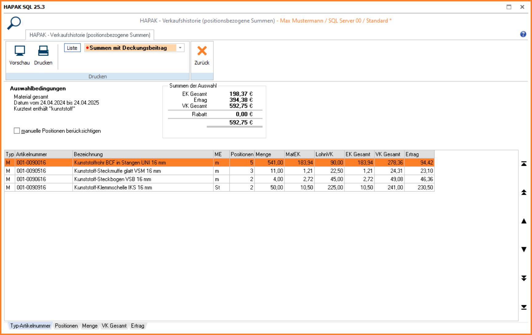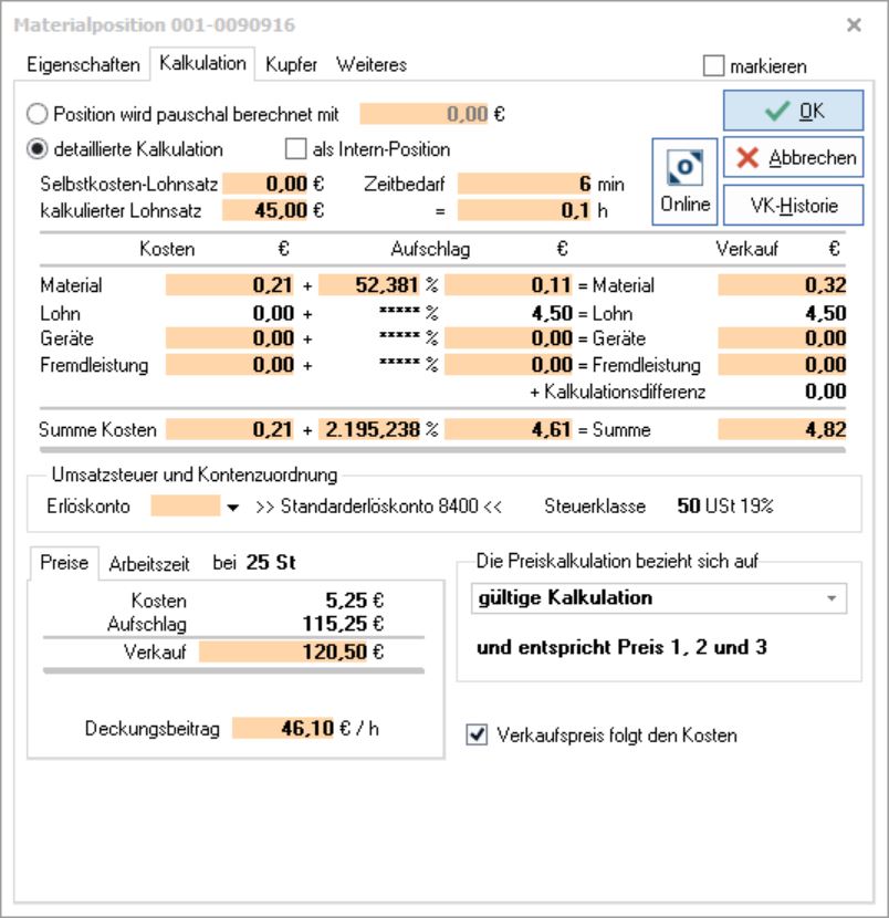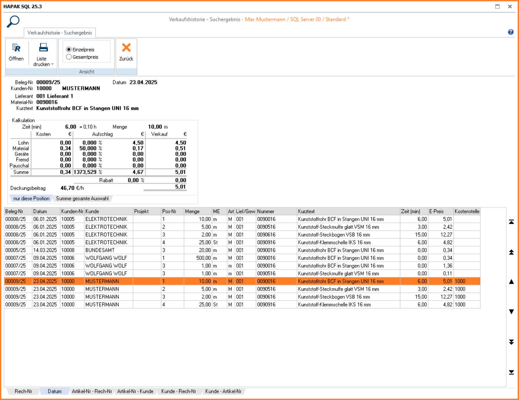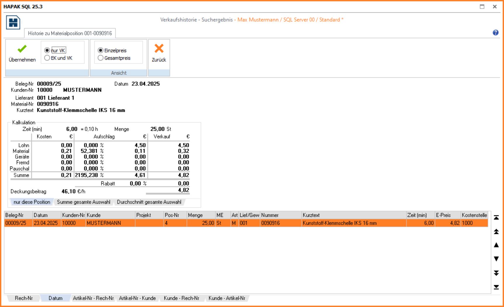 auch bei der Kalkulation einer Position im Dokument haben Sie Einblick in die Verkaufs- bzw. Preishistorie (PH-04, PH-05)