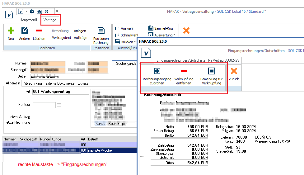 Verknüpfungen lassen sich nun auch rückwärts, z. B. aus Verträgen, anlegen.