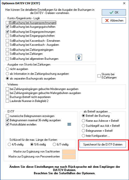 Speicherort für EXTF-Dateien kann in den FIBU-Export-Optionen vorgegeben werden.