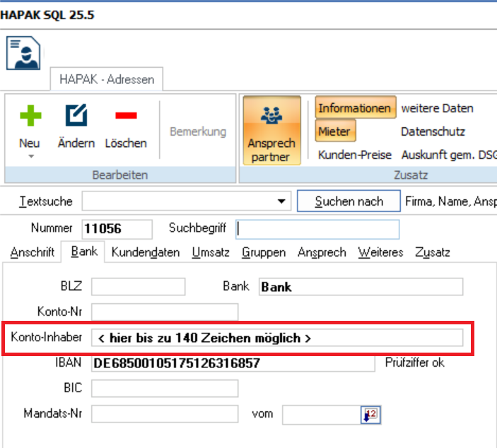 Erweiterung des Datenfeldes des Kontoinhabers auf 140 Zeichen